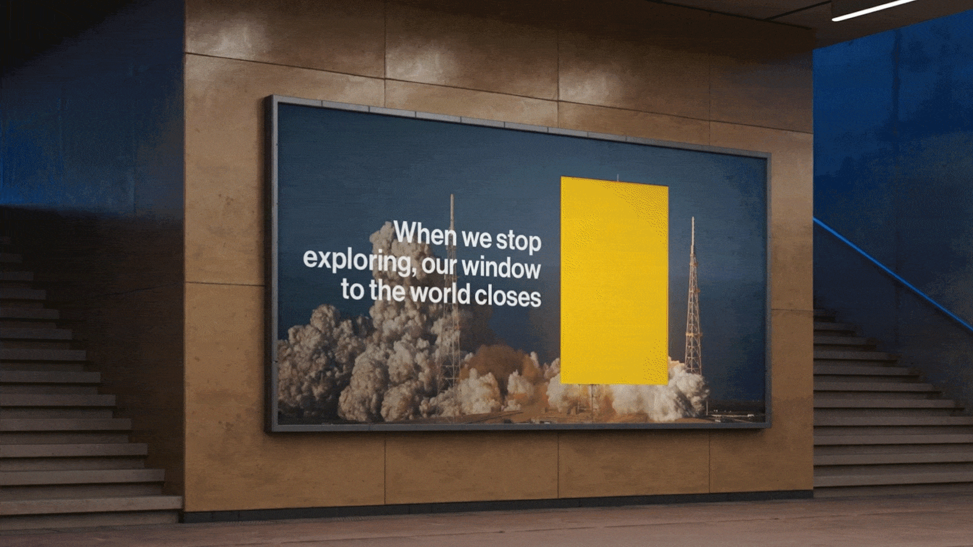 We closed National Geographic’s iconic window-frame logo in protest of a world without exploration, and framed the museum as an opportunity to reopen your window to the world.